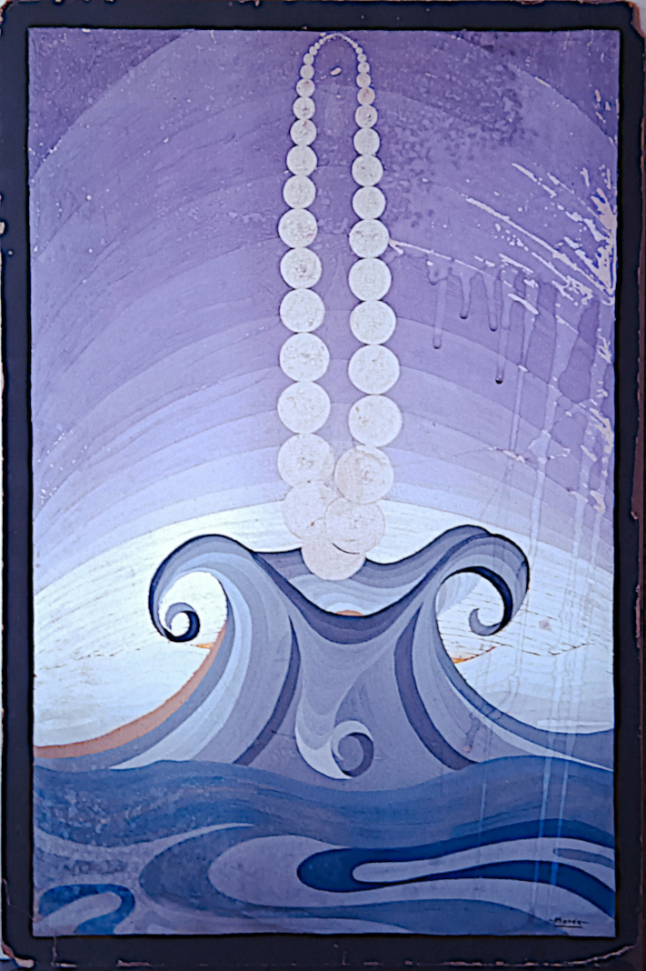 Morée: —The pearls—once emblems of refinement and bourgeois taste—are stripped of all glamour. Suspended in an acidic, deteriorating wash, they hover just above a consuming wave, as if beauty itself were moments from drowning.
